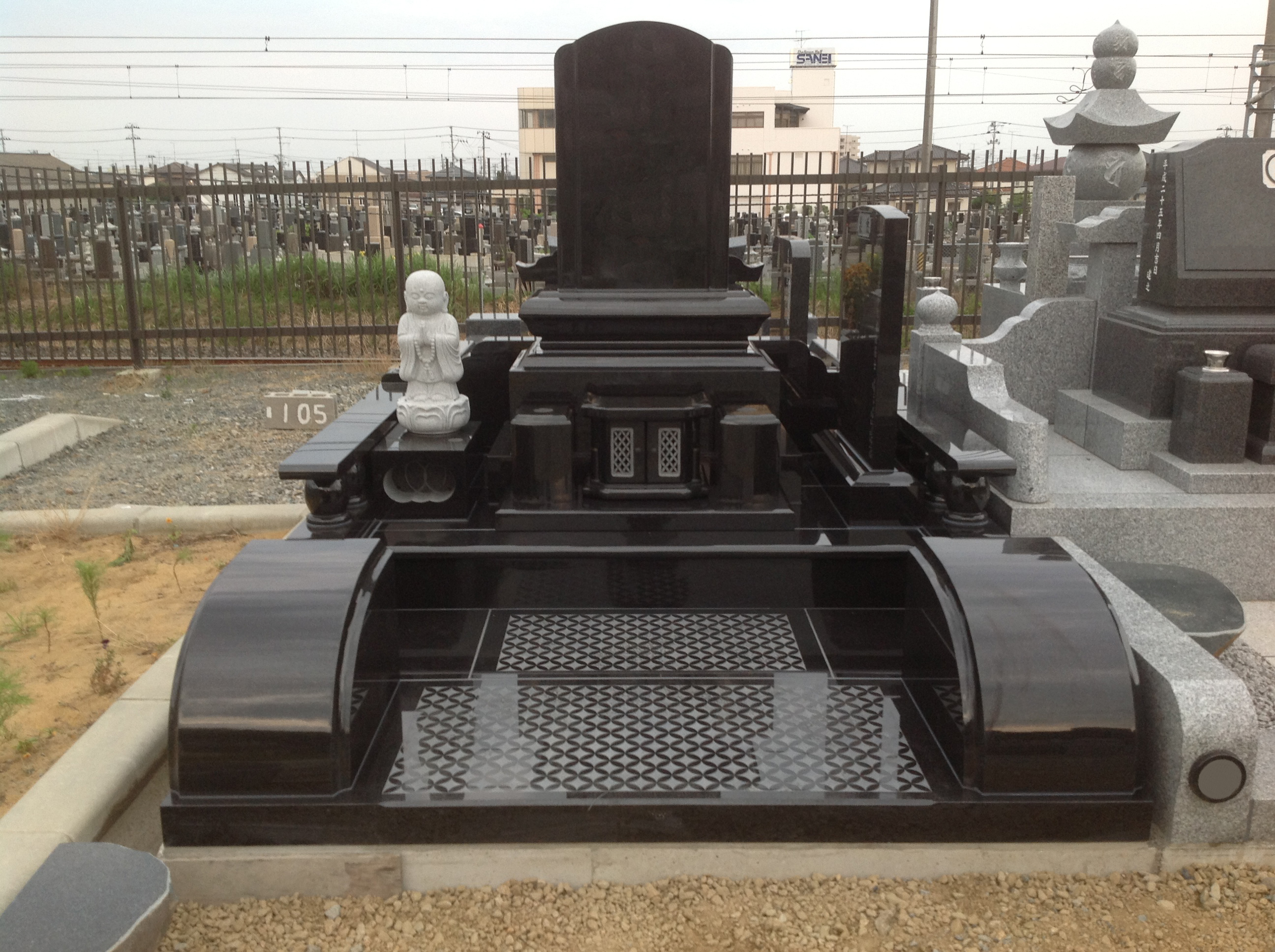 福島県いわき市四倉町にインド産黒御影石を使用した和洋型石碑と外柵を建立させていただきました。