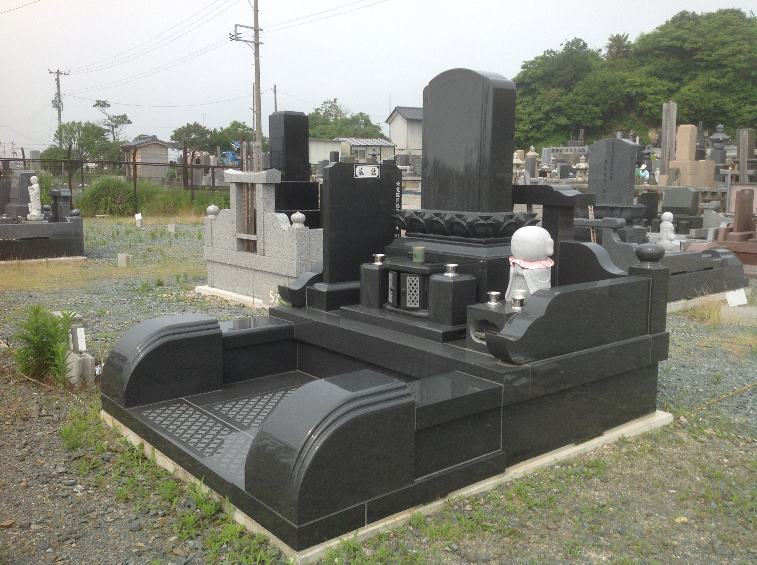 福島県いわき市四倉町にインド産黒御影石を使用した和洋型石碑と外柵を建立させていただきました。