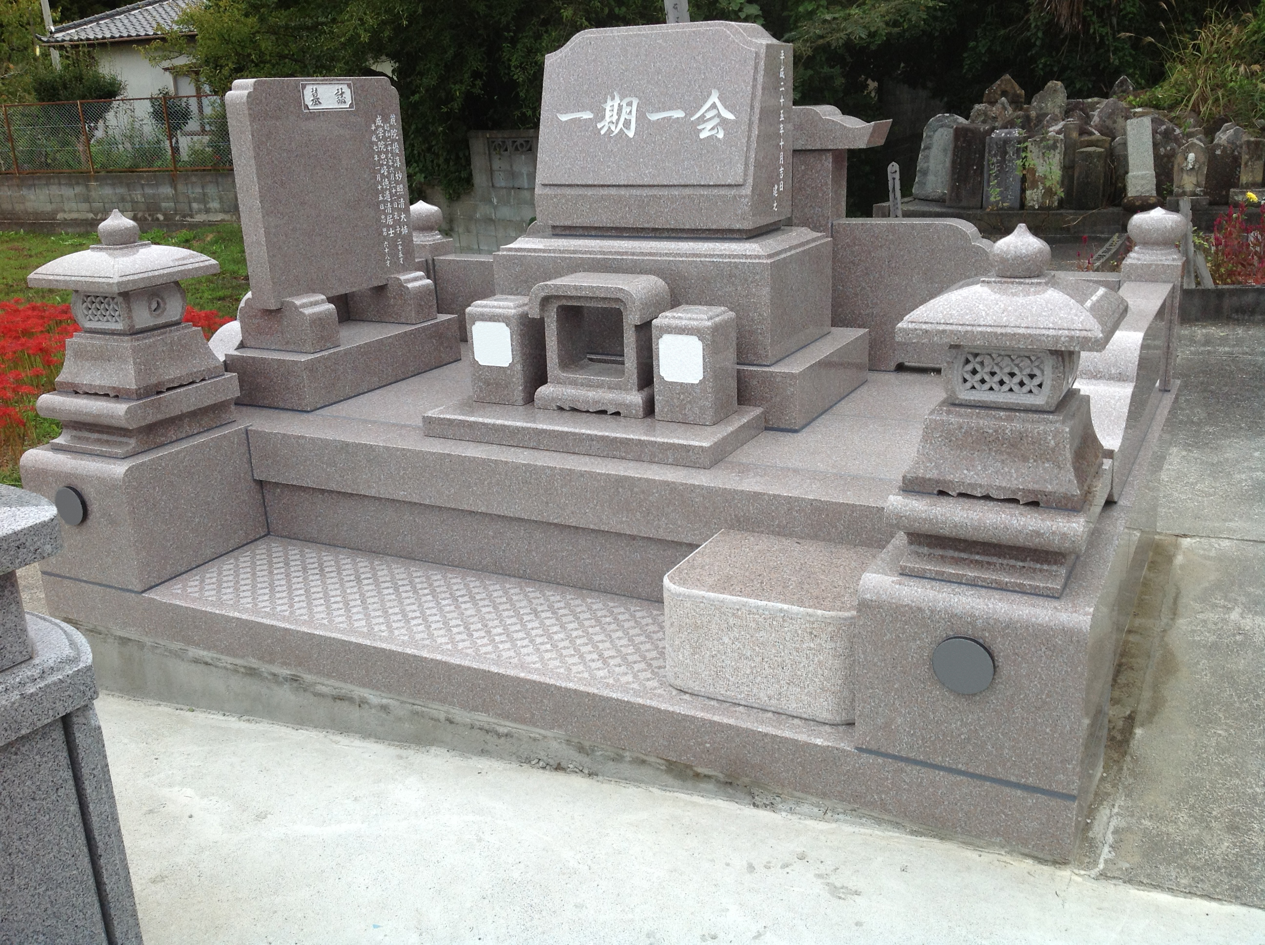 福島県いわき市四倉町に建立致しました。 石碑タイプ 洋型 石碑石種 中国産赤系御影石 外柵石種 中国産赤系御影石 その他の施工例