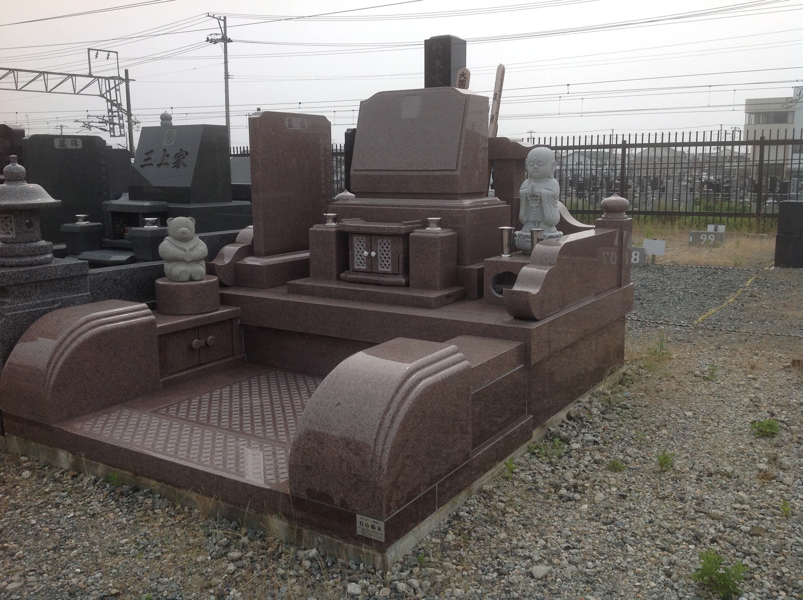福島県いわき市四倉町に建立致しました。 石碑タイプ 洋型 石碑石種 中国産赤系御影石 外柵石種 中国産赤系御影石 その他の施工例